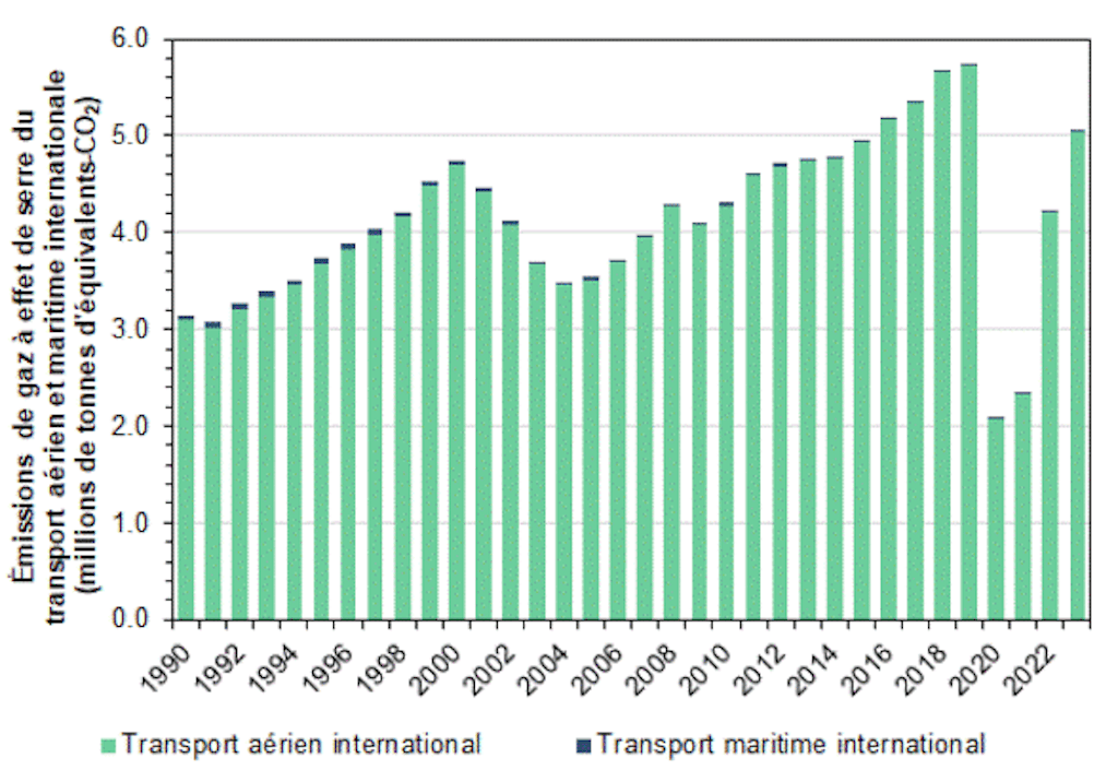 L’inventaire des gaz à effet de serre traite de manière distincte les émissions générées par le transport aérien national et international.