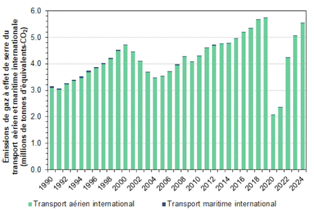 Émissions de gaz à effet de serre générées par le transport aérien et maritime international