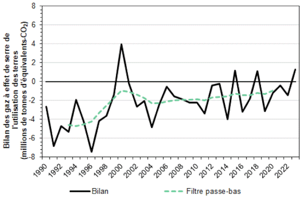 Le secteur de l’utilisation des terres recense les flux de gaz à effet de serre liés à l’utilisation des sols ou résultant de leur changement d’affectation.
