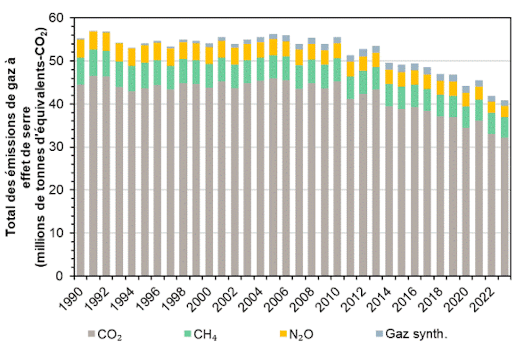L’inventaire des gaz à effet de serre de la Suisse est actualisé chaque année en avril sur la base des données de deux années avant. Les données présentées ci-après sont issues de l’inventaire des gaz à effet de serre d’avril 2025 (prochaine actualisation : avril 2026).