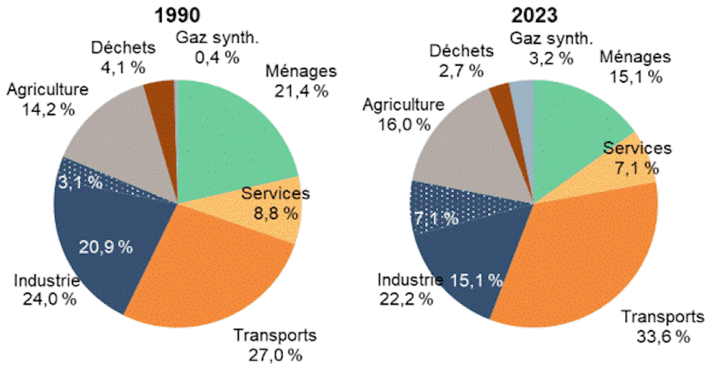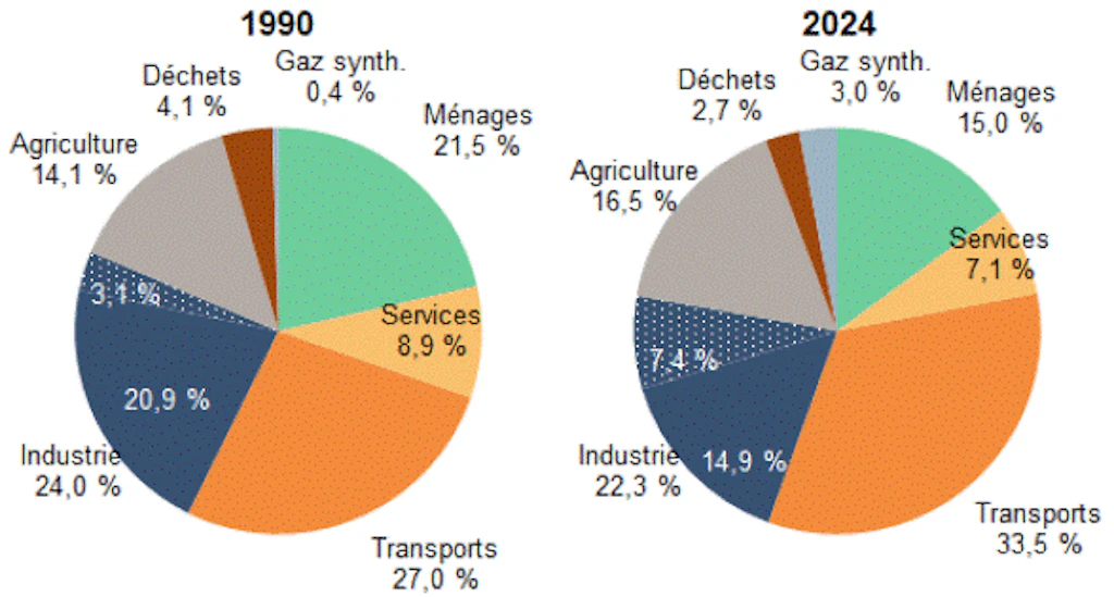 Répartition des émissions de gaz à effet de serre de la Suisse par secteurs