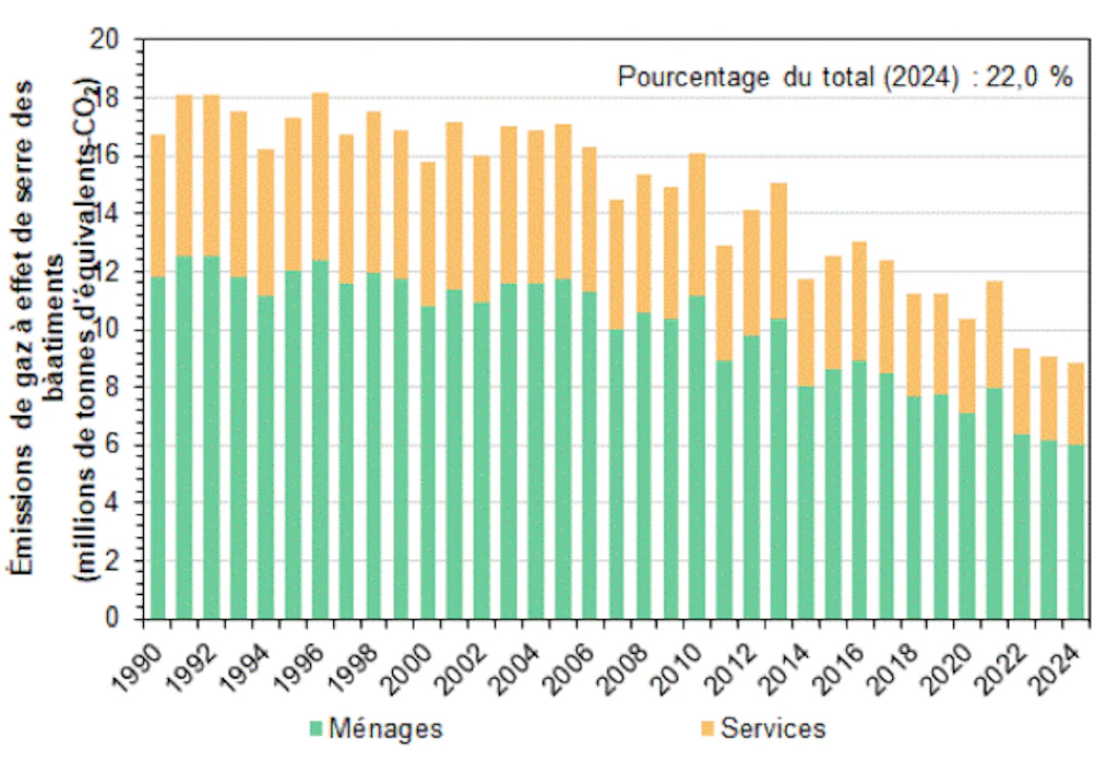 Émissions de gaz à effet de serre générées par le secteur du bâtiment