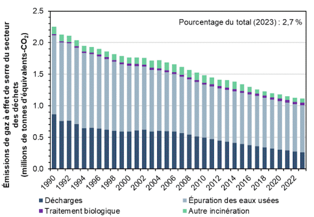Émissions de gaz à effet de serre générées par le secteur des déchets