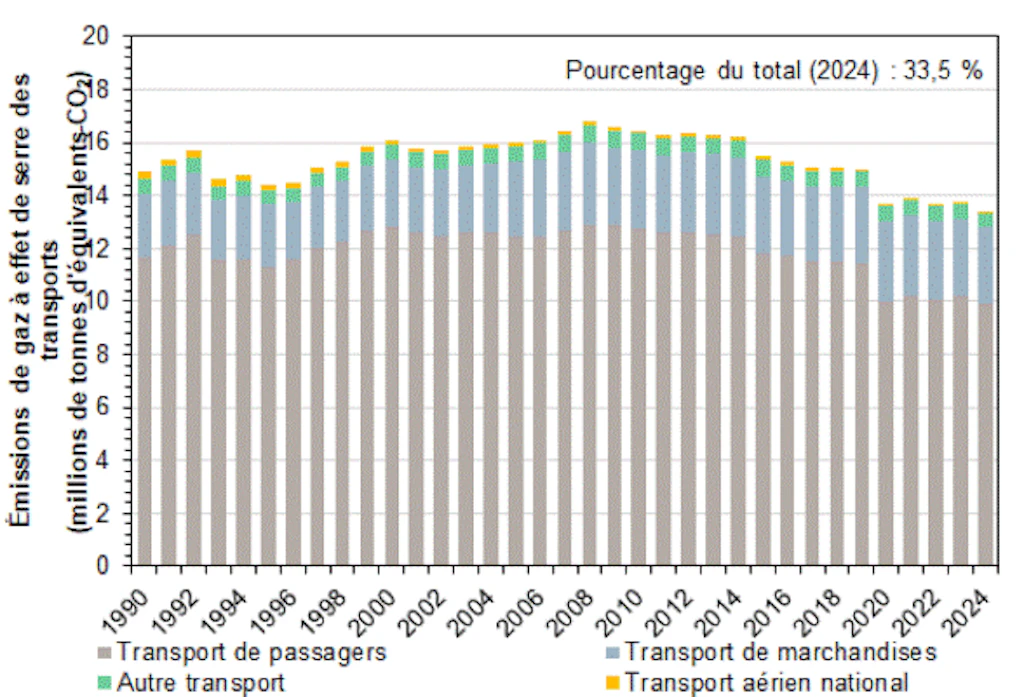 Le secteur des transports recense les émissions générées par l’ensemble des moyens de transport. Les émissions provenant du transport aérien et maritime international ne sont toutefois pas prises en considération dans ce secteur, mais présentées de manière distincte.