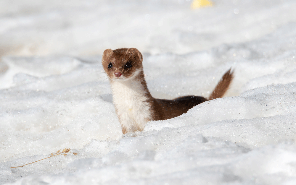 Chasseuse hors pair, la belette n’en est pas moins la proie de nombreux rapaces. Sa vivacité constitue sa stratégie de survie. Considéré comme le plus petit prédateur de Suisse, ce mustélidé n'est guère plus lourd que le campagnol, dont pourtant il se nourrit. Sa présence est donc une bénédiction pour l’agriculture. Or l’aire de distribution de la belette ne cesse de se morceler.