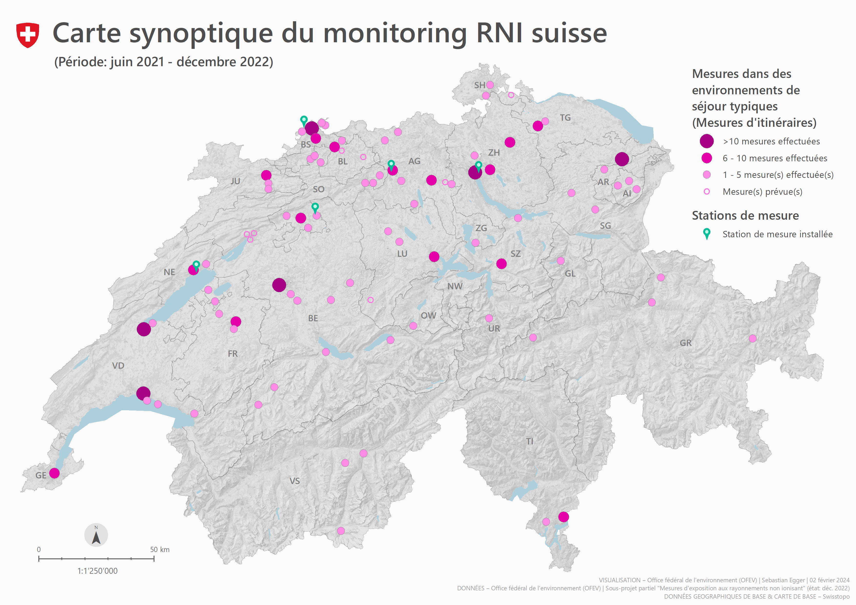 Figure 3 : Carte synoptique du monitoring RNI suisse