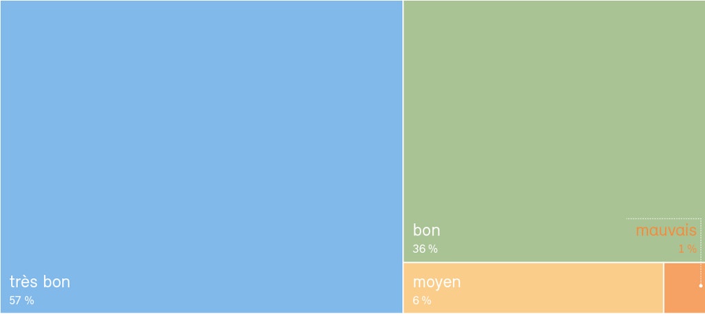 - Selon l’indice des diatomées, la qualité de l’eau se trouve dans un bon à très bon état à plus de 93 % des stations de mesure (voir graphique). Des résultats insuffisants ont été enregistrés surtout sur le Plateau et dans le Jura.