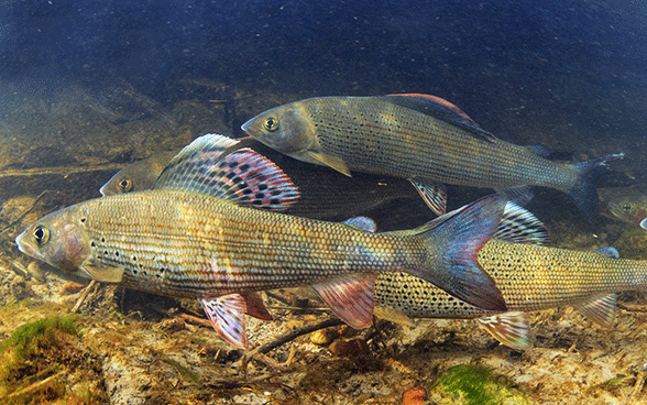 De nombreuses espèces de poisson dépendent d’habitats différents pour chaque étape de leur vie. Les ombres, par exemple, fraient de préférence sur des bancs de graviers propres où le débit de l’eau est rapide et où le frai peut se développer dans un milieu protégé bien oxygéné. Les jeunes ombres, qui ne sont pas de bons nageurs, apprécient quant à eux les rives plates, richement structurées, où l’eau s’écoule plutôt lentement. Une fois adultes, ces poissons trouvent en revanche leur nourriture plus souvent dans les profondes ravines au courant rapide et constant. Par rapport au début du siècle passé, bon nombre d’espèces de poisson indigènes se sont raréfiées voire ont complètement disparu de nos lacs et de nos cours d’eau.