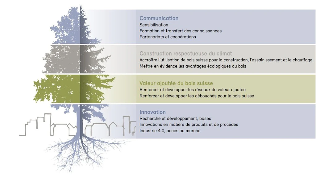 - Renforcement et développement des réseaux de valeur ajoutée des forêts et du bois suisses