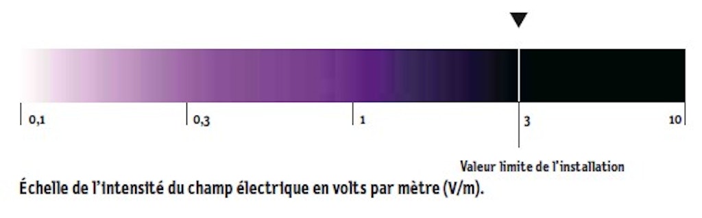 - 8.5 volts par mètre (V/m) pour les émetteurs à ondes moyennes,