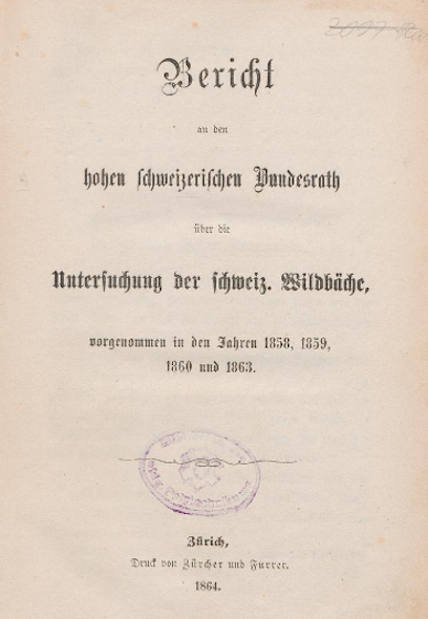 Karl Culmann, lui aussi professeur à l’EPF de Zurich (en sciences de l’ingénieur), a rédigé en 1864 le « Rapport au Conseil fédéral sur les torrents des Alpes suisses, inspectés en 1858, 1859, 1860 et 1863 ».