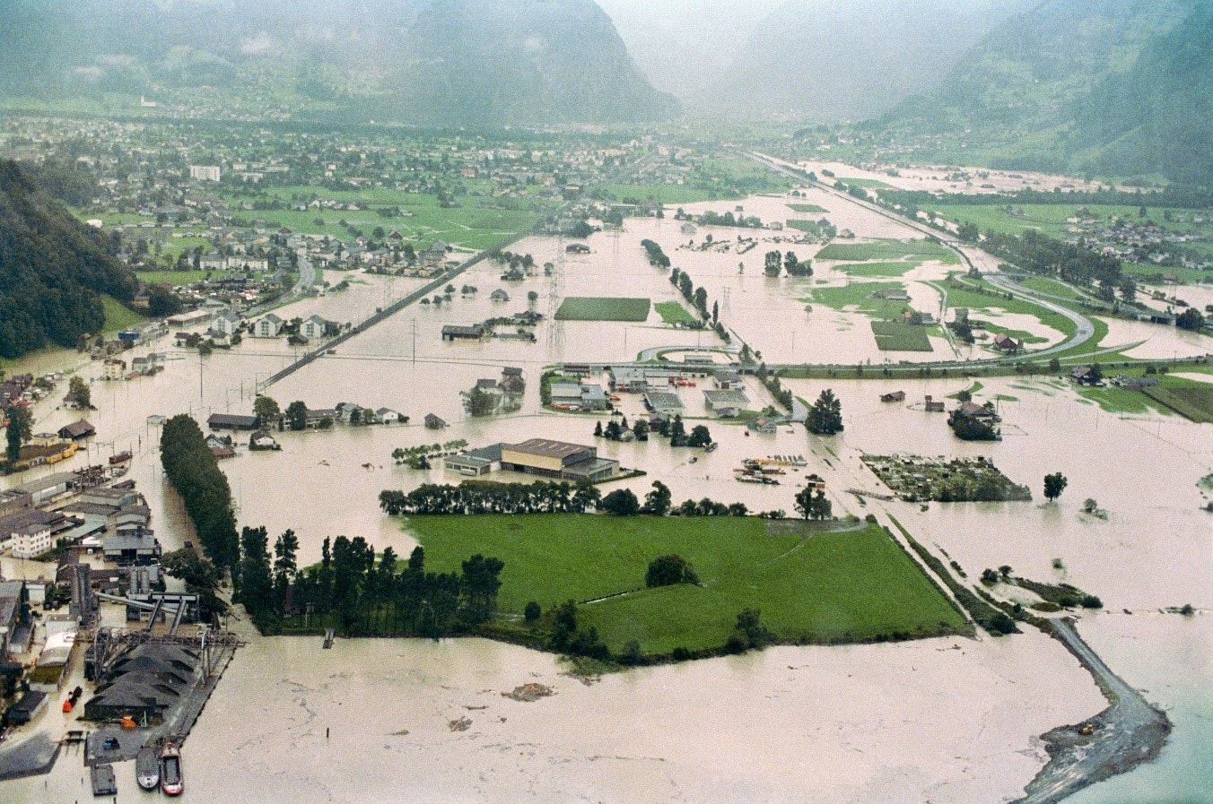 Les intempéries des 24 et 25 août 1987 provoquent des glissements de terrain et des inondations dans tout l’arc alpin, en particulier dans le canton d’Uri, à Goms ainsi que dans le Val Poschiavo et la Valteline. La plaine de la Reuss uranaise est inondée, et huit personnes perdent la vie.