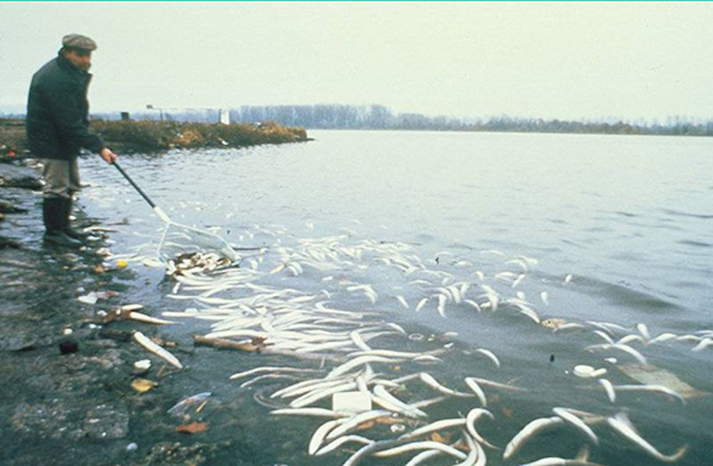 Même aux Pays-Bas, on a pu observer les effets des polluants chimiques, certes principalement sur les larves d’insectes et sur les tubificidés, mais toujours est-il que le captage d’eau potable a été interrompu jusqu’aux frontières de ce pays. Ainsi, Schweizerhalle a été la deuxième grande catastrophe environnementale en 1986, après celle de Tchernobyl en avril, à ébranler la confiance de la population dans la technique.