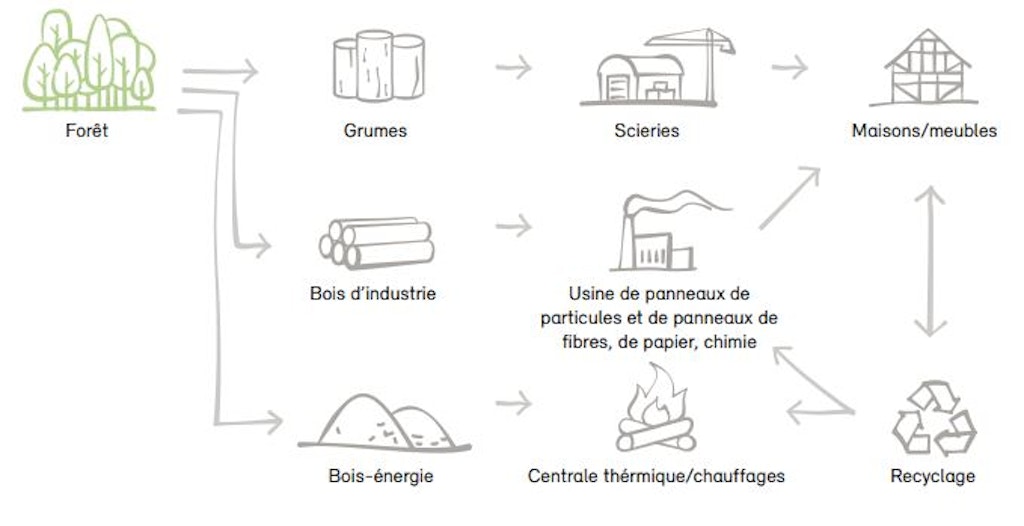 Explications relatives au schéma sur l’utilisation en cascade du bois
