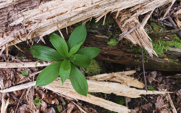 Si penetra sempre più profondamente nel bosco. Improvvisamente si fa chiaro, davanti a noi si trova una radura. Dove fino a qualche tempo fa il bosco era ancora fitto, ora troviamo tronchi d’albero segati. Accanto crescono nuove erbe e giovani alberelli. A loro piace stare qui al sole. Anche gli abitanti del bosco affamati di sole come le farfalle apprezzano particolarmente queste radure. Al centro vi è un albero segato. Il suo legno è scolorito, si sta lentamente disgregando. Ovunque strisciano insetti: il cosiddetto legno morto li attrae come per magia.