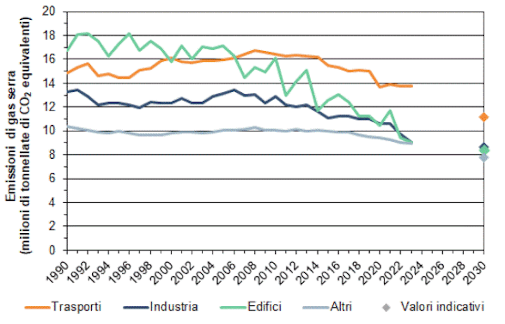L’ordinanza sul CO2 definisce valori indicativi per i singoli settori per le emissioni massime consentite nel 2030 rispetto alle emissioni del 1990: