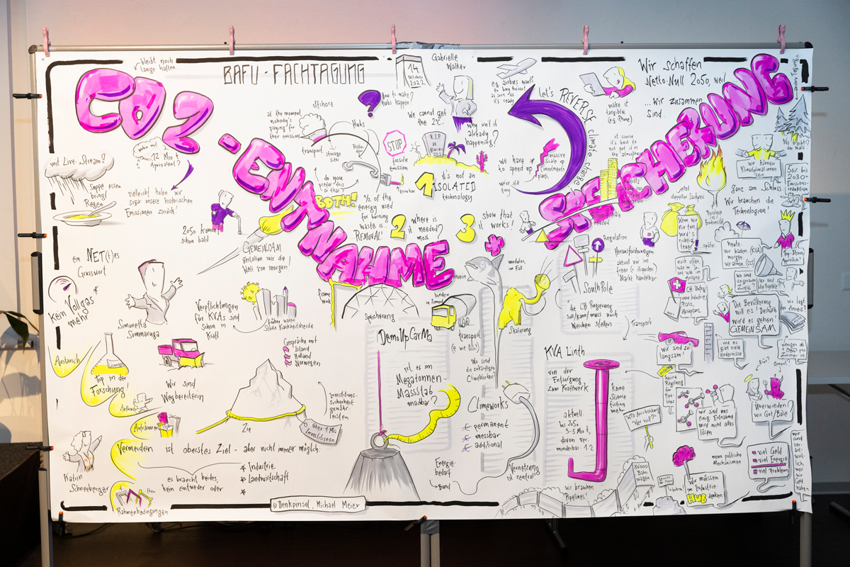 Il 14 ottobre 2022 rappresentanti della politica, dell'economia, della ricerca e dell'amministrazione hanno discusso su come la Svizzera possa far progredire a lungo termine il prelievo e il sequestro di CO2. Una cosa è emersa in modo chiaro: per raggiungere entro il 2050 l'obiettivo del saldo netto delle emissioni pari a zero servono soluzioni rapide.