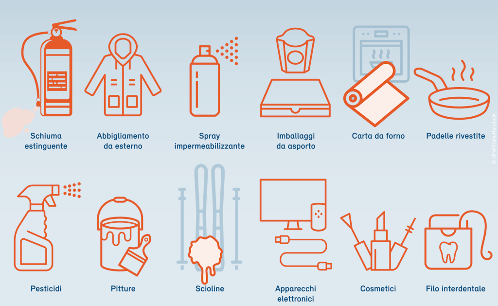 Considerate le loro proprietà particolari, le PFAS sono utilizzate in numerose applicazioni e prodotti, come per esempio nelle schiume estinguenti, in tessili liporepellenti e idrorepellenti, in carta e cartone rivestiti, nei rivestimenti antiaderenti degli utensili da cucina, nella plastica, in dispositivi medici e molte altre applicazioni.