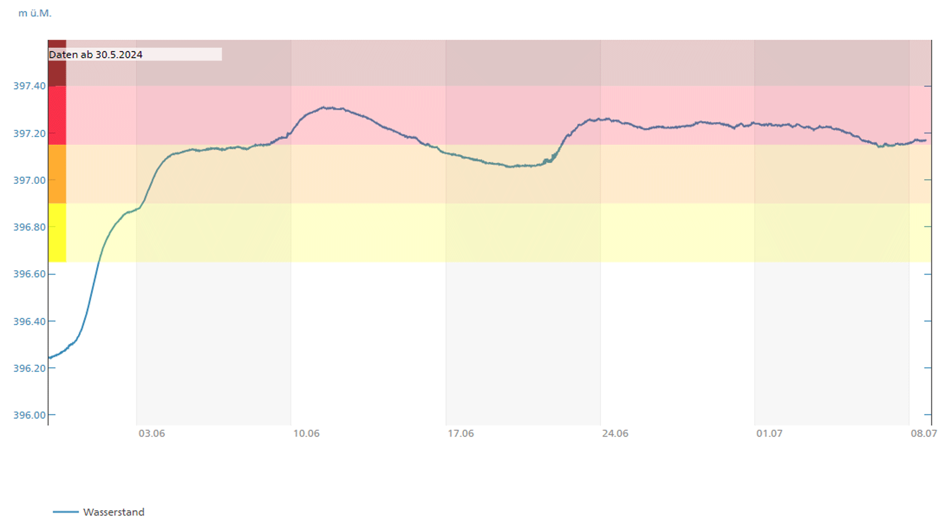 Il lago Bodanico e il suo emissario (Reno) sono oggetto d’allerta dall’inizio di giugno: il grado di pericolo 4 è stato raggiunto il 4 giugno dal lago inferiore vicino a Berlingen e l’8 giugno dal lago superiore vicino a Romanshorn. Da allora, è sceso solo saltuariamente al grado di pericolo 3. Il livello più alto è stato raggiunto l’11 e il 12 giugno, con 397,31 metri s.l.m. per il lago superiore e con 397,00 metri s.l.m. per il lago inferiore. Statisticamente, questo livello d’acqua corrisponde a una piena decennale. Si tratta di un livello simile a quello della piena dell’estate 2016, ma inferiore al più grande evento verificatosi nella primavera del 1999.
