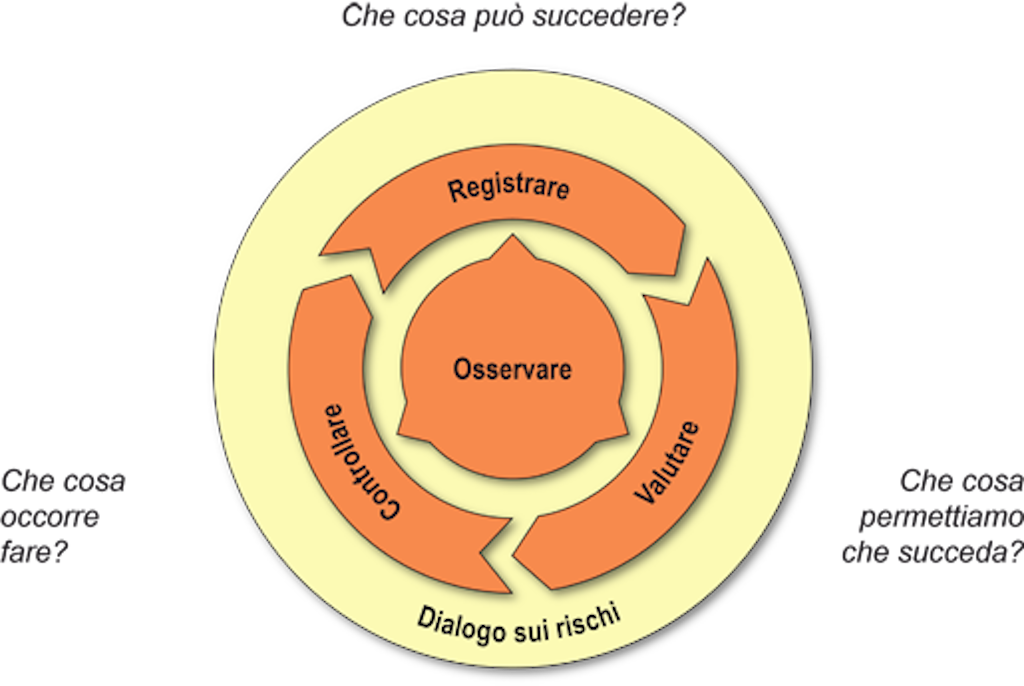 Comprende l'identificazione periodica dei rischi e la loro valutazione in termini di accettazione sociale, attraverso la quale vengono definite le necessità e le priorità di intervento. L'evoluzione dei rischi viene monitorata attraverso misure appropriate: