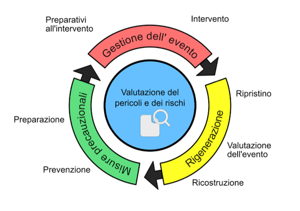 La gestione dei rischi è considerata integrale se tutti i partecipanti danno il loro contributo, se vengono combinate tipologie di misure diverse e se viene profuso un impegno duraturo ai fini della sicurezza dai pericoli naturali. Ciò deve avvenire prima, durante e dopo l'evento.