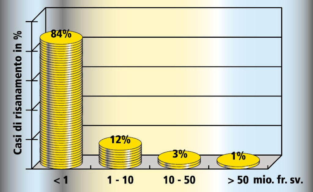 Non tutti i risanamenti dei siti inquinati costano milioni: numerosi piccoli casi dovrebbero essere risanabili a costi compresi tra alcune centinaia di migliaia di franchi e il milione di franchi. I risanamenti che costano diverse decine di milioni costituiscono fortunatamente delle rare eccezioni.