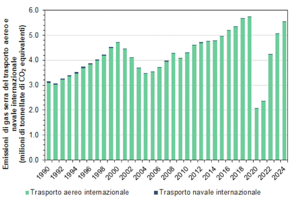 Nell’inventario dei gas serra le emissioni derivanti dal trasporto aereo nazionale e internazionale figurano separatamente.