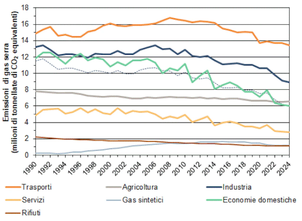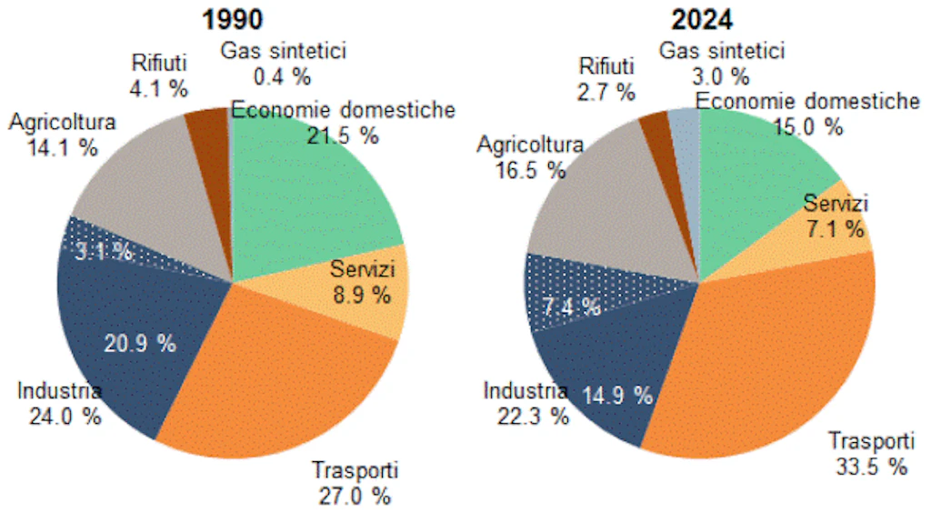 Suddivisione delle emissioni di gas serra della Svizzera per settori