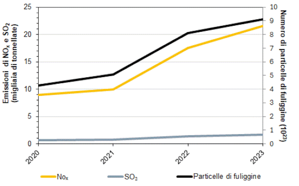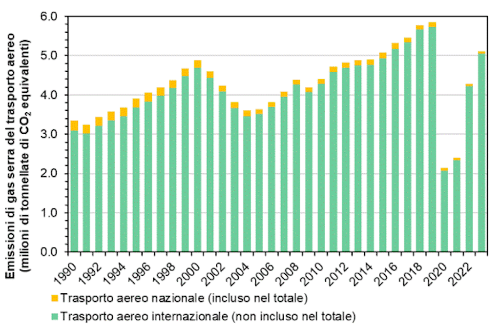 - Sono incluse le emissioni dei voli nazionali: 0,07 milioni di tonnellate di CO₂ equivalenti (2023).