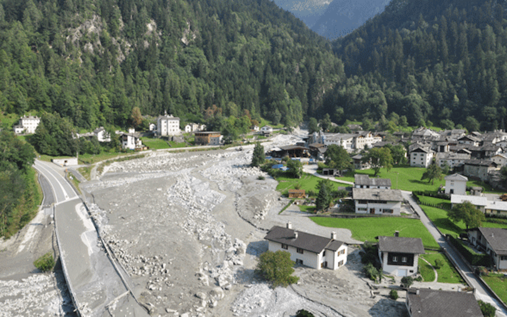 La frana di Bondo in Val Bregaglia (GR) è stata una delle più grandi degli ultimi 100 anni in Svizzera. Il 23 agosto sono crollati dal Pizzo Cengalo dai 3 ai 4 milioni di metri cubi di materiale roccioso e detritico verso valle, raggiungendo un’altezza di diversi metri. La massa franata si è rapidamente frammista all’acqua proveniente dallo scioglimento dei ghiacciai e dal sottosuolo. Si ipotizza che siano state mobilizzate anche masse di ghiaccio. Nonostante il bel tempo si è generata una cosiddetta colata detritica che è scesa a gran velocità lungo la Val Bondasca fino al paese di Bondo.