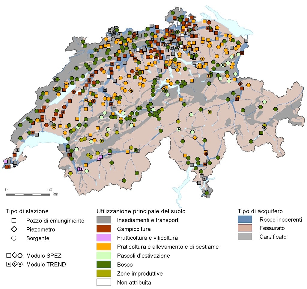 Il modulo SPEZ comprende quasi 500 stazioni di misurazione distribuite in tutto il Paese e dal 2002 è gestito in stretta collaborazione con i Cantoni. Le stazioni di misurazione coprono tutte le regioni svizzere, le diverse condizioni idrogeologiche e in particolare gli influssi antropici derivanti dall'utilizzazione del suolo nel rispettivo bacino imbrifero. Il coordinamento dell'osservazione delle acque sotterranee nel quadro del modulo SPEZ garantisce che i dati siano rilevati in modo omogeneo sull'intero territorio svizzero, comparabili a livello nazionale e usufruibili a lungo termine senza lacune mantenendo una qualità elevata.