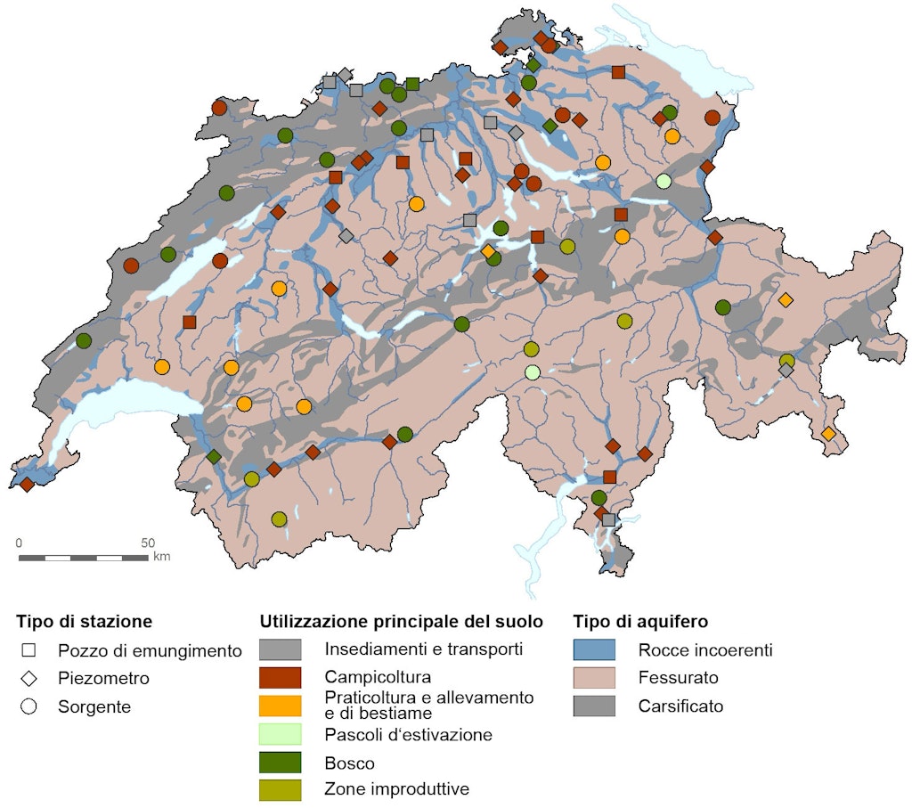 Il modulo QUANT della rete nazionale d’osservazione delle acque sotterranee NAQUA rileva la quantità delle acque di falda a livello nazionale.