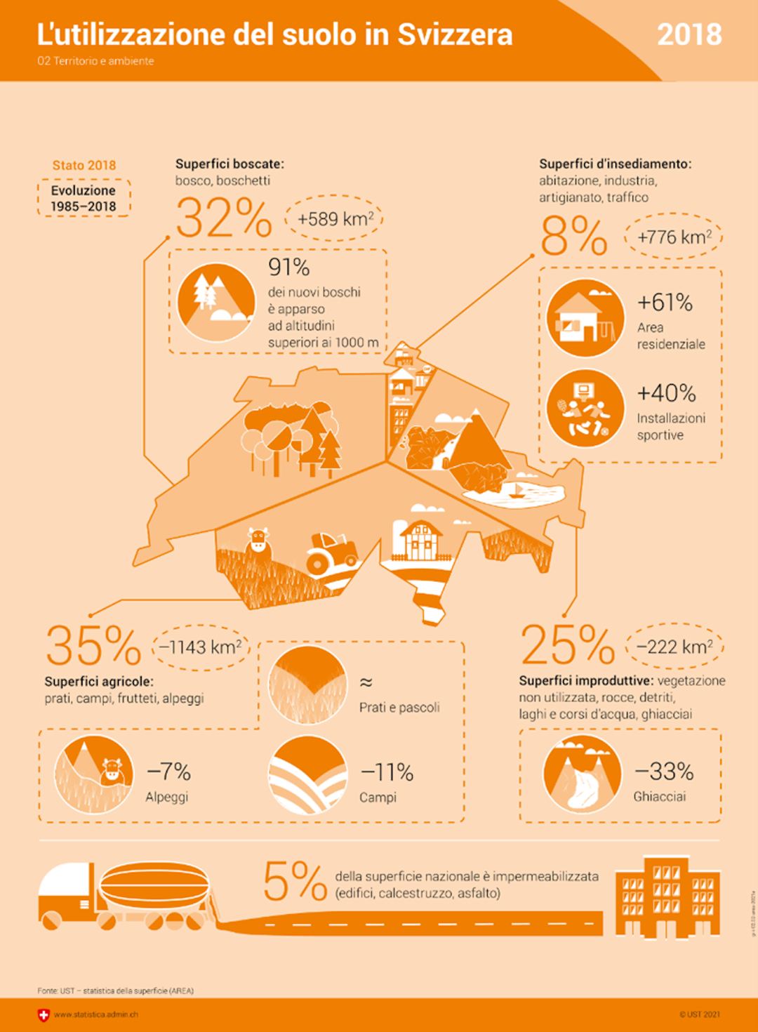 Nel XX secolo, in Svizzera si è registrata un’evoluzione marcata nell’utilizzo del territorio, contrassegnato da un massiccio aumento della popolazione e della superficie.