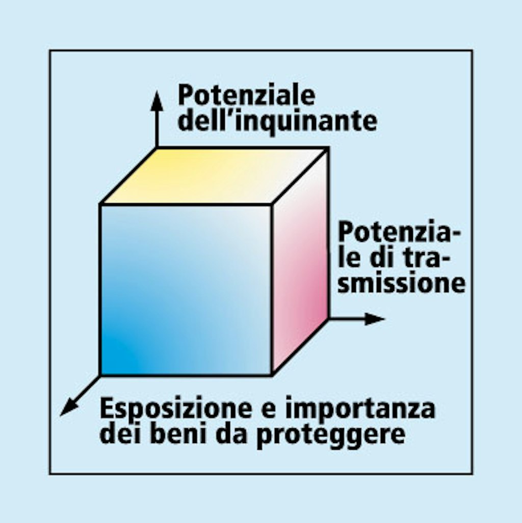 Questi tre criteri principali possono essere rappresentati tramite un modello tridimensionale. Il volume del "cubo" fra i tre assi rappresenta l'entità del pericolo per l'ambiente. Nella valutazione va inoltre tenuto in considerazione che, spesso, i siti inquinati o i siti contaminati sono costituiti da veri e propri "cocktail di sostanze nocive".
