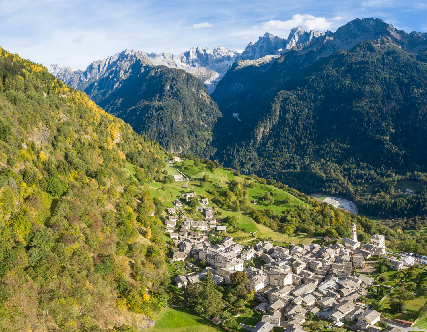 Gioia e dolore spesso vanno a braccetto. Nel 2015 la Società svizzera del patrimonio culturale ha premiato il Comune di Bregaglia con il Premio Wakker per la gestione attenta delle sue preziose qualità architettoniche e paesaggistiche. Due anni dopo, la comunità valligiana ha visto questo prezioso patrimonio in grave pericolo: il 23 agosto 2017, infatti, un crollo di roccia verificatosi sul versante settentrionale del Piz Cengalo ha causato diverse colate detritiche scese fino ai margini del centro abitato di Bondo, in Val Bondasca, distruggendo ponti, strade e case e separando i villaggi di Bondo e Promontogno, che con l’andar del tempo si erano fusi in un solo abitato.