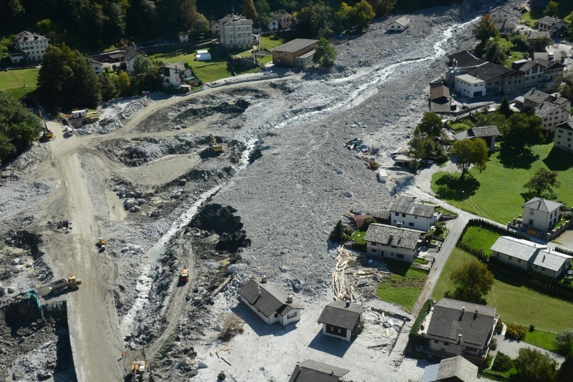 I responsabili locali erano ben consapevoli che la Val Bregaglia, come molte altre zone montane, deve aspettarsi anche in futuro cadute di massi e colate detritiche. Tanto più che con il cambiamento climatico aumenteranno le precipitazioni estreme e il suolo ghiacciato in permanenza ad alta quota si fonderà e diverrà instabile. Si trattava quindi di rimuovere i danni causati dalla colata detritica, ma anche di proteggere i villaggi e le infrastrutture della valle da eventi futuri e di integrare le necessarie strutture di protezione nel paesaggio. Il Comune ha quindi dapprima effettuato un’analisi degli eventi più recenti, utilizzandola poi come base per elaborare scenari di pericolo come pure un progetto preliminare per i nuovi impianti di arginatura e le infrastrutture per il traffico. Questo progetto preliminare è servito a sua volta come base per un concorso nell’ambito del quale dei team di esperti sono stati invitati a presentare proposte per la progettazione dei nuovi impianti.
