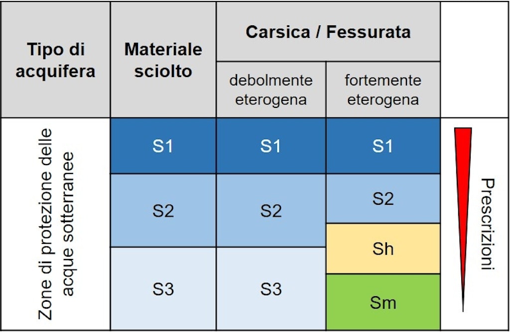 Zona di protezione S1: si trova nelle immediate vicinanze di una captazione di acque sotterranee e la protegge da danneggiamenti e contaminazioni. Qui sono consentiti soltanto gli impianti e le attività che servono direttamente per l’approvvigionamento in acqua potabile.