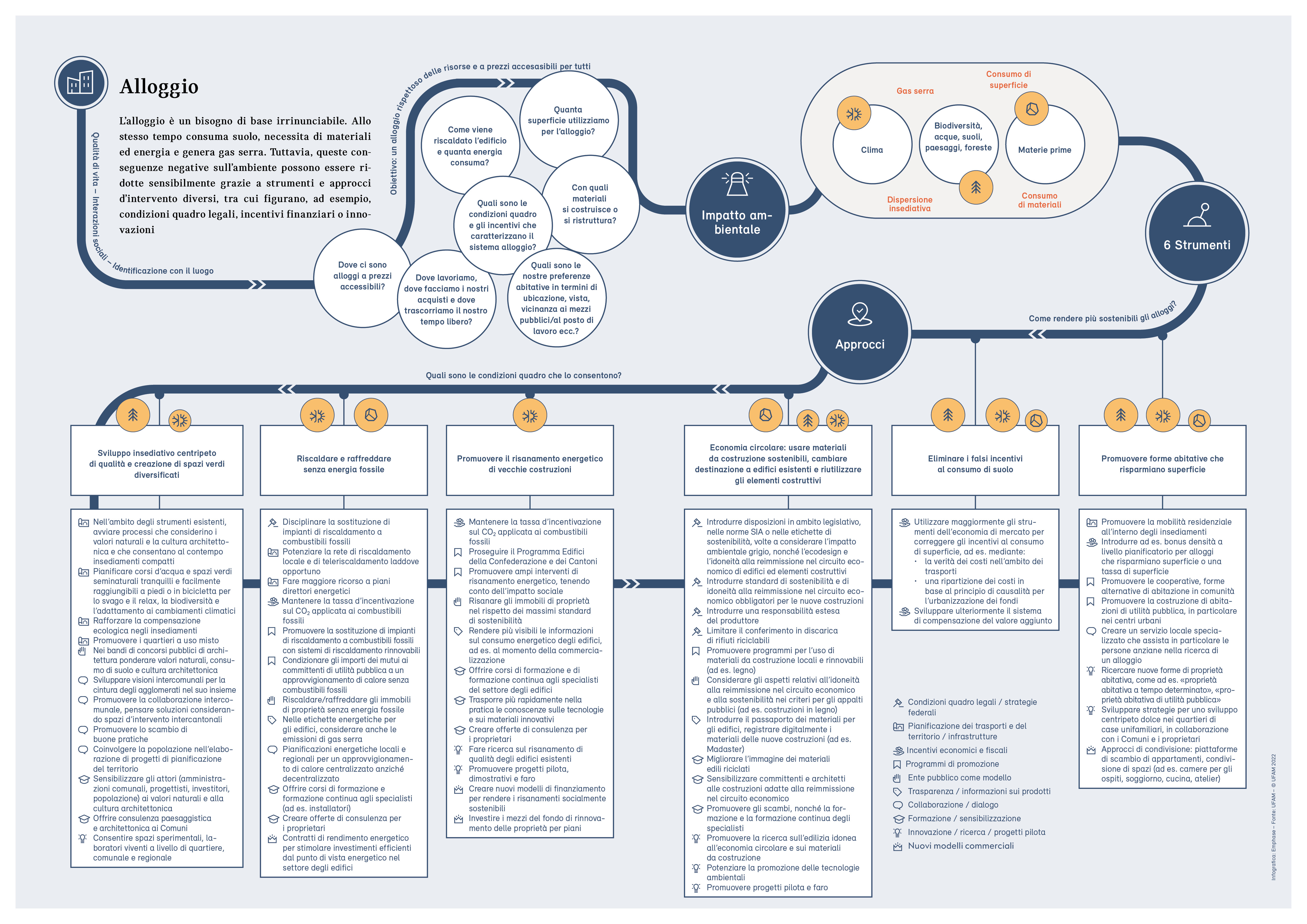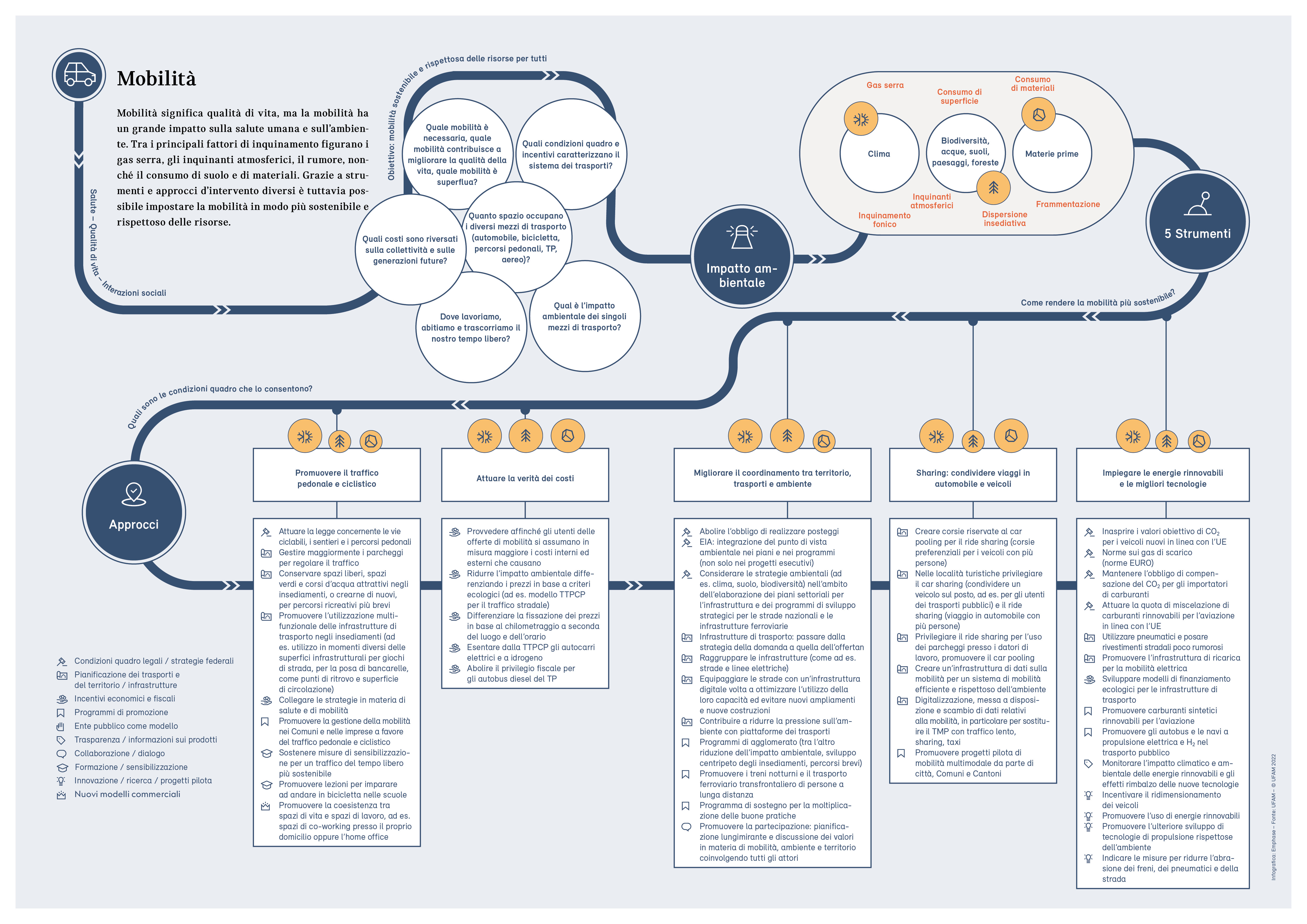 Con il rapporto quadriennale «Ambiente Svizzera», il Consiglio federale adempie il mandato d’informazione previsto dalla legge sulla protezione dell’ambiente (art. 10f). Il presente rapporto «Ambiente Svizzera 2022» fornisce una panoramica sullo stato e sull’evoluzione dell’ambiente in Svizzera e sull’impatto ambientale del nostro Paese. Traccia un bilancio delle misure adottate dalla Confederazione per migliorare la qualità dell’ambiente e indica dove sono necessari ulteriori interventi.