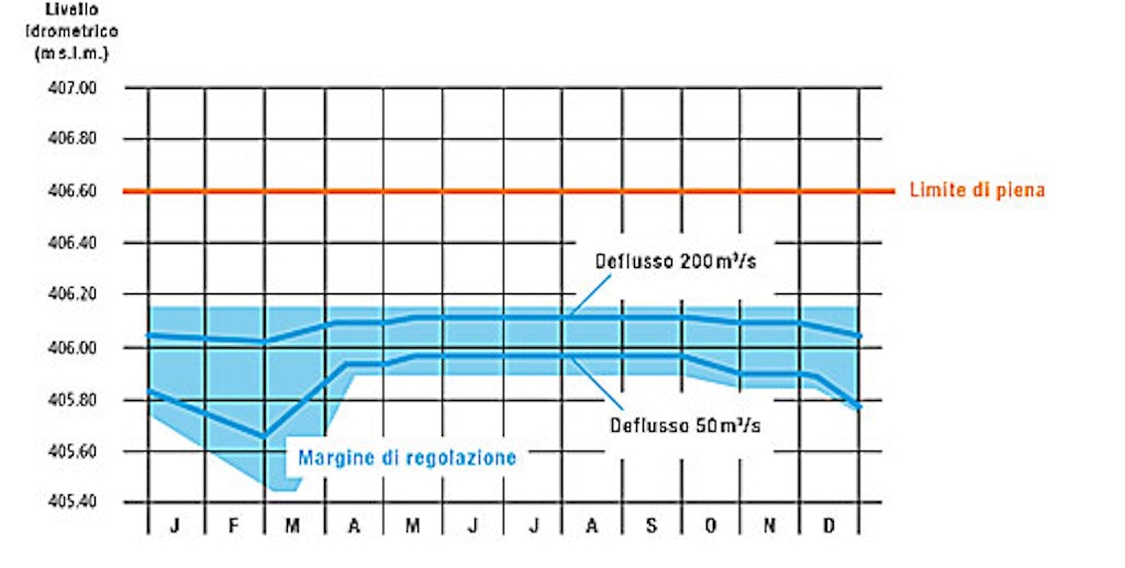 D'altro canto, già in condizioni idrometriche normali la libertà di manovra della regolazione lacustre è assai più limitata di quanto generalmente ipotizzato: volendo prevenire livelli di piena e di magra e dovendo allo stesso tempo tenere conto della limitata capacità di scarico dei laghi, il margine di oscillazione accettabile è ridotto.