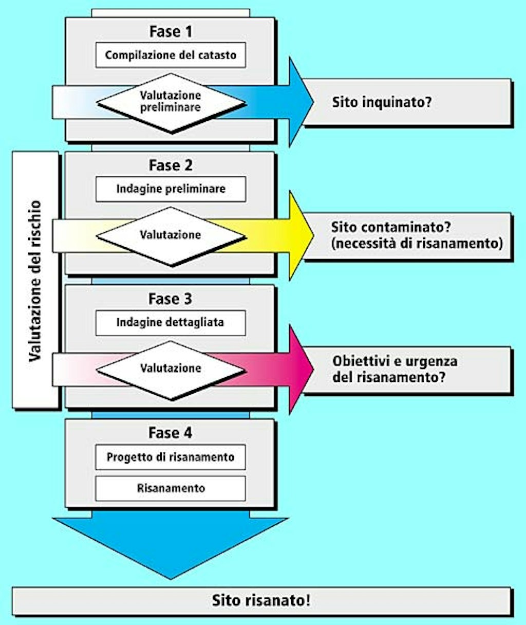 I problemi relativi ai siti contaminati devono essere trattati sistematicamente, al fine di evitare costi sproporzionati. È dunque consigliato seguire lo schema riportato qui sotto.