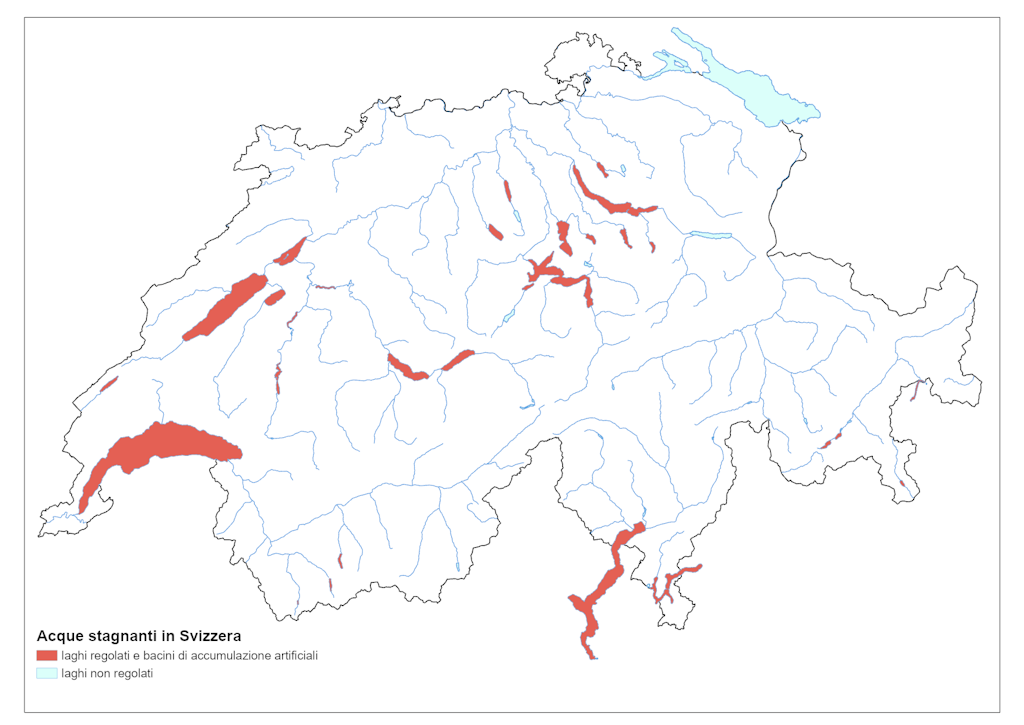 Il livello delle acque di 30 dei 35 laghi più grandi è regolato artificialmente. Oltre il 50 per cento delle rive dei principali laghi è edificato. Di conseguenza, sono scomparse le zone di transizione ecologicamente pregiate tra ambienti acquatici e terrestri.