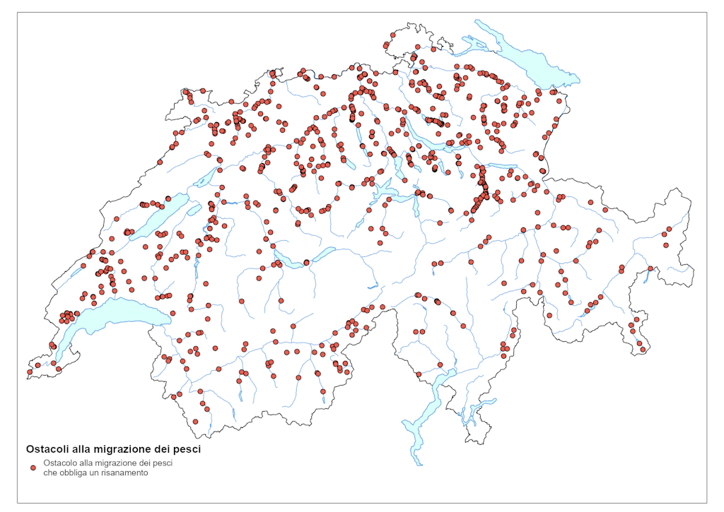 Circa 1000 dighe, sbarramenti, briglie, banchine e rampe costituiscono degli ostacoli per pesci e altri organismi viventi.