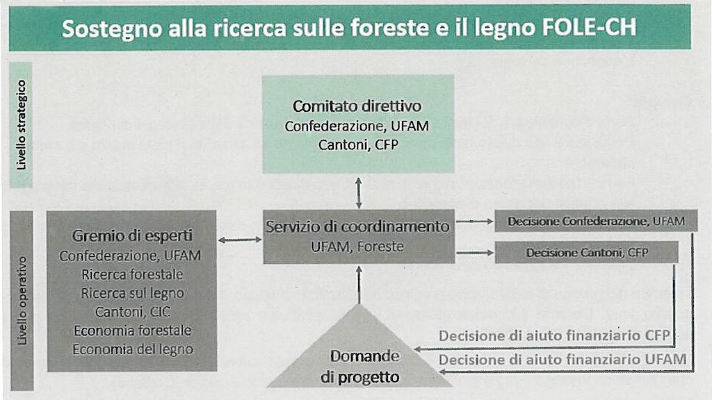 Dal 1° gennaio 2020 il Sostegno alla ricerca sulle foreste e il legno in Svizzera (FOLE-CH) sostituisce il Fondo per la ricerca forestale e del legno istituito nel 1946. Nel suo rapporto di verifica del 2017, la Commissione federale delle finanze (CFF) ha evidenziato l’attuale mancanza della legittimazione per una gestione comune dei fondi di Confederazione e Cantoni. Il settore del bosco e del legno desidera tuttavia disporre di uno strumento per promuovere la ricerca in questo settore specifico, in modo da colmare una lacuna nel paesaggio svizzero della ricerca. Per tale ragione è stata creata una struttura con flussi finanziari separati.