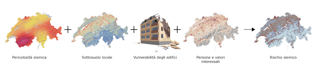 Dal 2023 la Svizzera dispone del primo modello nazionale di rischio sismico. Il modello mostra che, a causa dell'elevata densità edilizia, il rischio sismico è concentrato soprattutto nei centri urbani. Il rischio è particolarmente elevato quando gli edifici sorgono su terreni instabili, dove le scosse sismiche sono più intense.